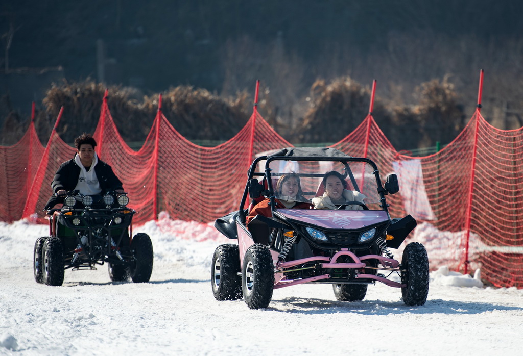 1月19日,在邯郸市复兴区东高河村滑雪场,游客在体验雪地越野车项目。