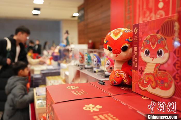 1月22日,北京,“四海一堂春——乙巳蛇年新春文化展”在中国国家博物馆展出。图为现场售卖的蛇年文创产品。 中新社记者 赵文宇 摄